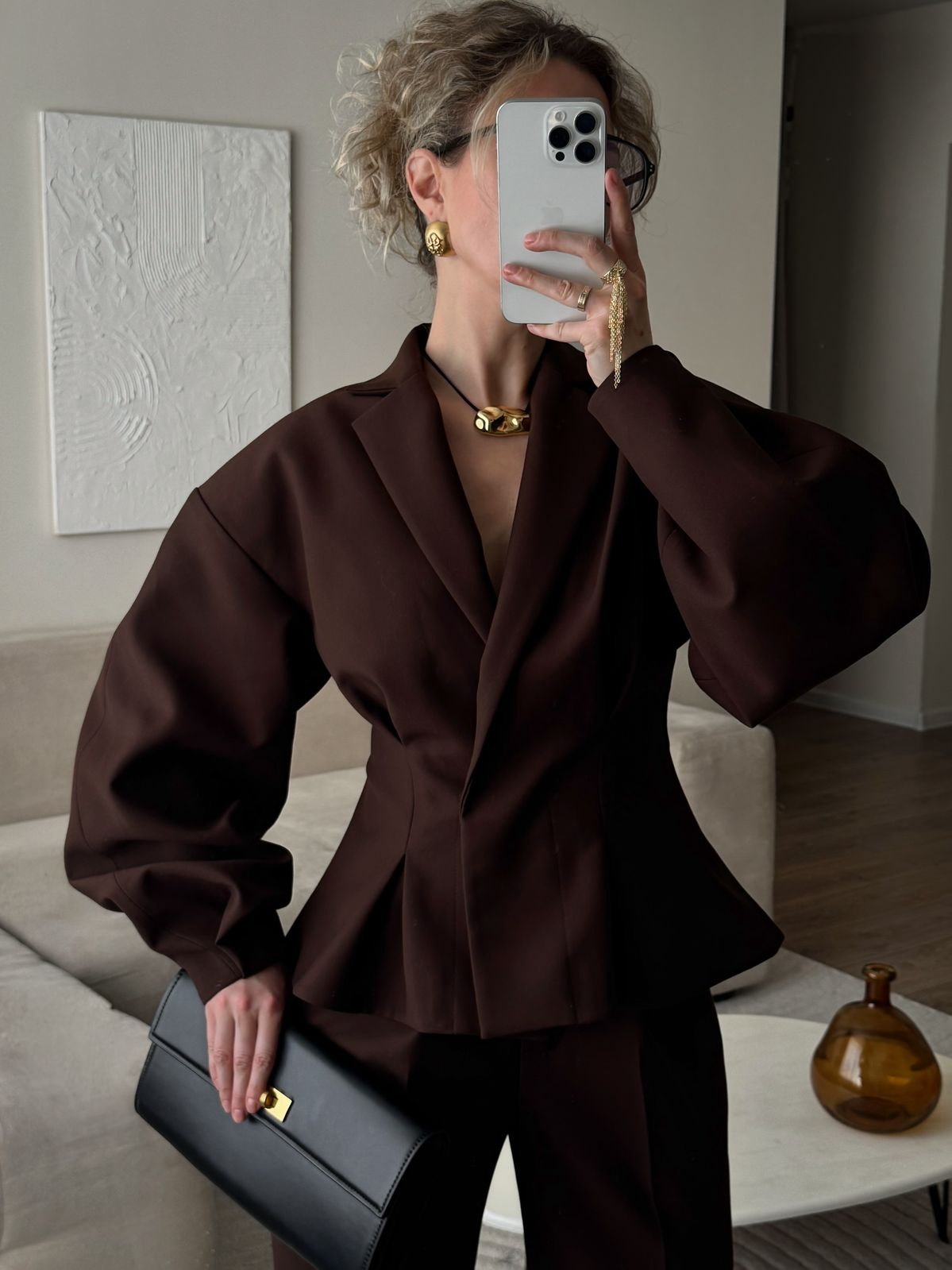 - Об’ємний пуховик: контраст між суворістю класичного крою піджака та спортивним стилем пуховика створює динамічний та актуальний лук;