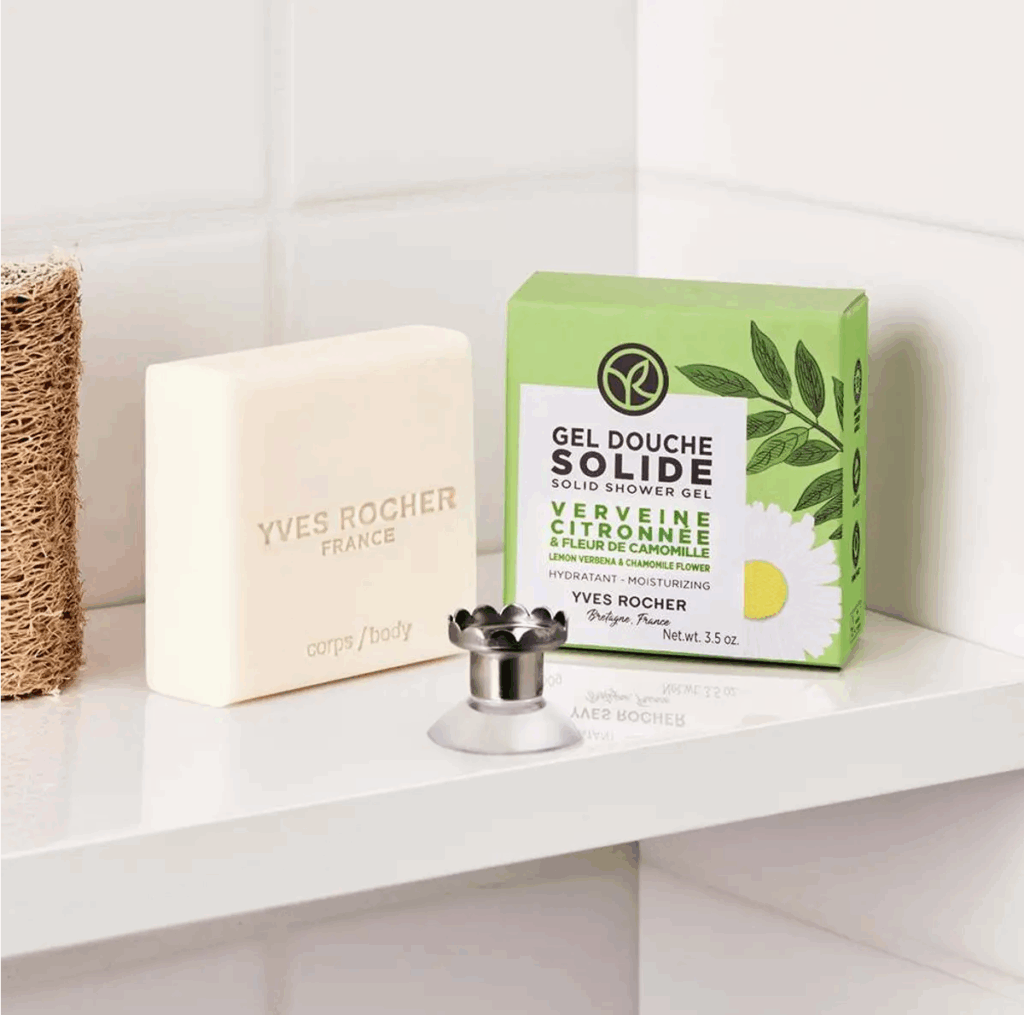 Yves Rocher твердий гель для душу «Вербена та ромашка» — веганська формула, 92% інгредієнтів натурального походження. Де замовити: офіційний магазин бренда. Як використовувати: спінити в долонях або на губці, змити теплою водою.