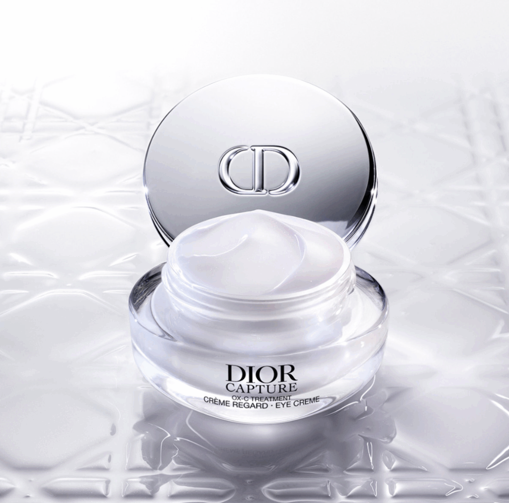 Dior Capture Eye Cream — крем для контуру очей із кофеїном та екстрактом чаги; допомагає з темними колами й набряками. Де замовити: офіційні корнери Dior, авторизовані парфумерні мережі. Як використовувати: рисове зерно на орбітальну кістку вранці/ввечері.