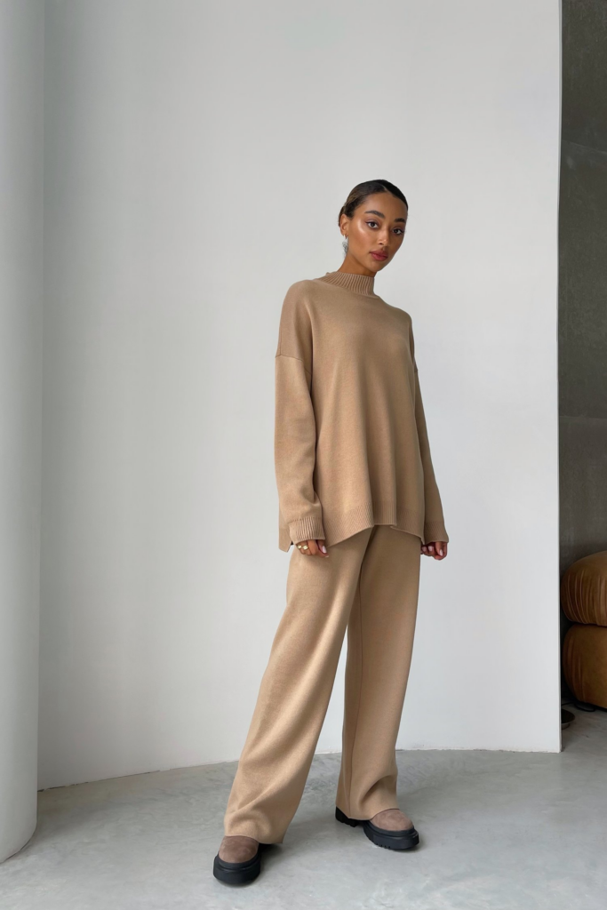 Трикотажні штани стали справжнім must-have холодного сезону. Вони дарують відчуття тепла та пластичності, легко адаптуються під будь-який верхній одяг і чудово працюють у total knit образах. Такий варіант особливо цінують ті, хто любить мінімалізм і чисті силуети.